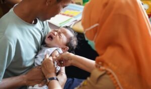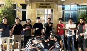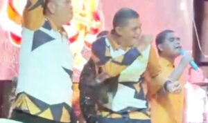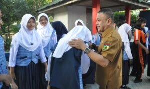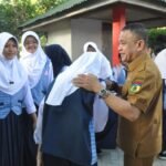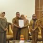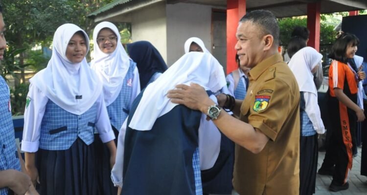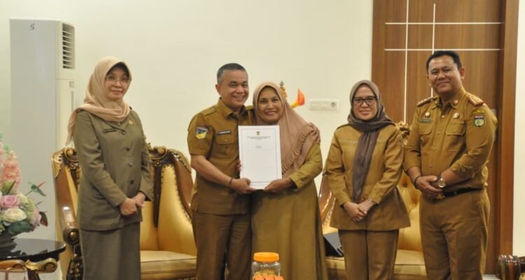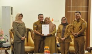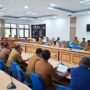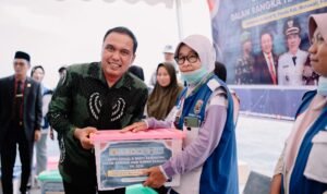 Penyerahan potongan tumpeng dari Kepala OJK Sulteng, Bonni Hardy Putra kepada wartawan