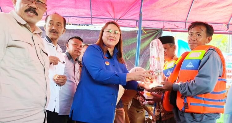 Bupati Donggala Vera Elena Laruni menyerahkan bantuan berupa perahu nelayan beserta kelengkapannya