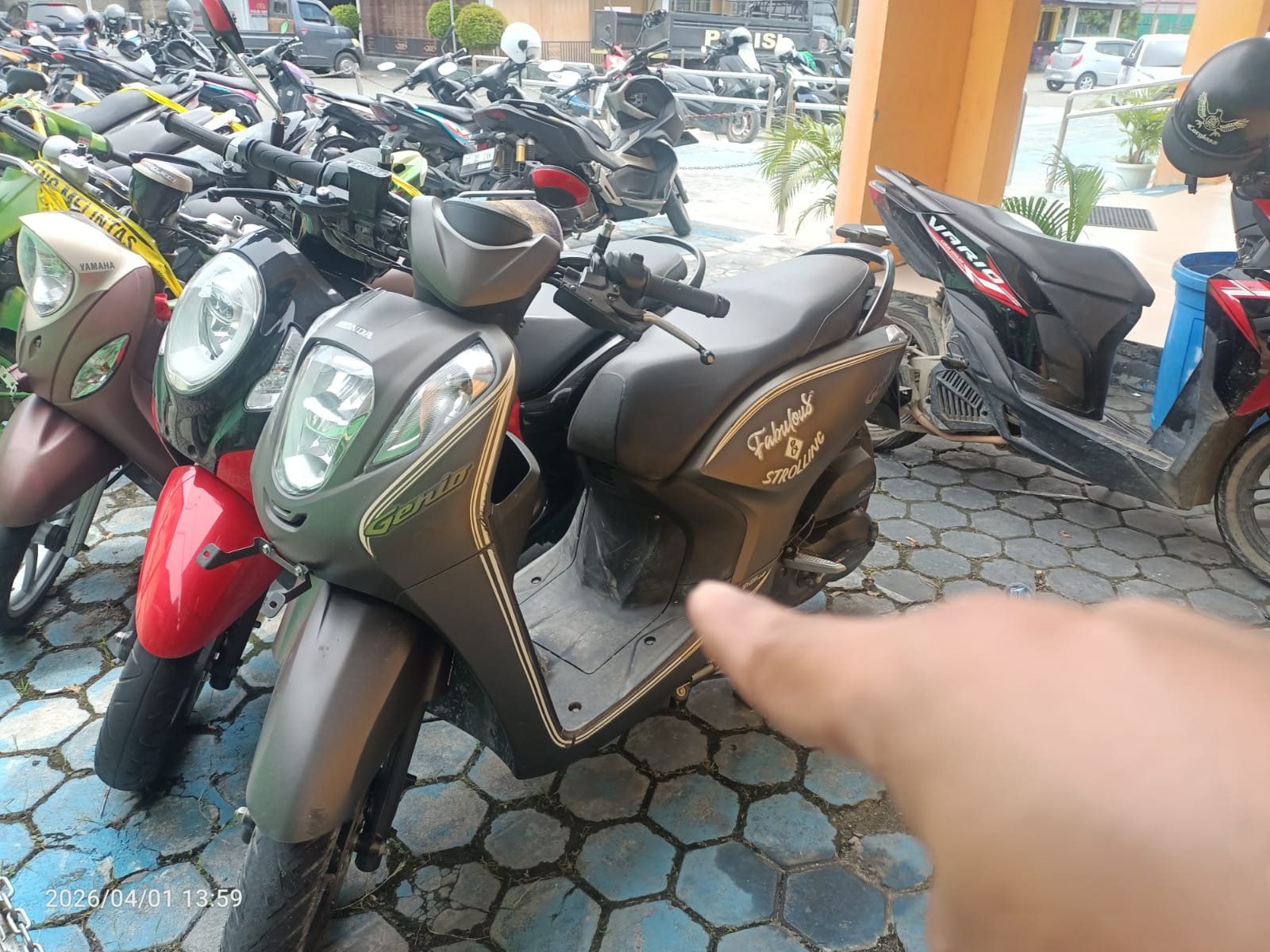 Dari tangan para pelaku, petugas juga berhasil menyita barang bukti berupa satu unit sepeda motor Honda Genio warna coklat dengan nomor polisi DN 4381 EU yang merupakan kendaraan korban.