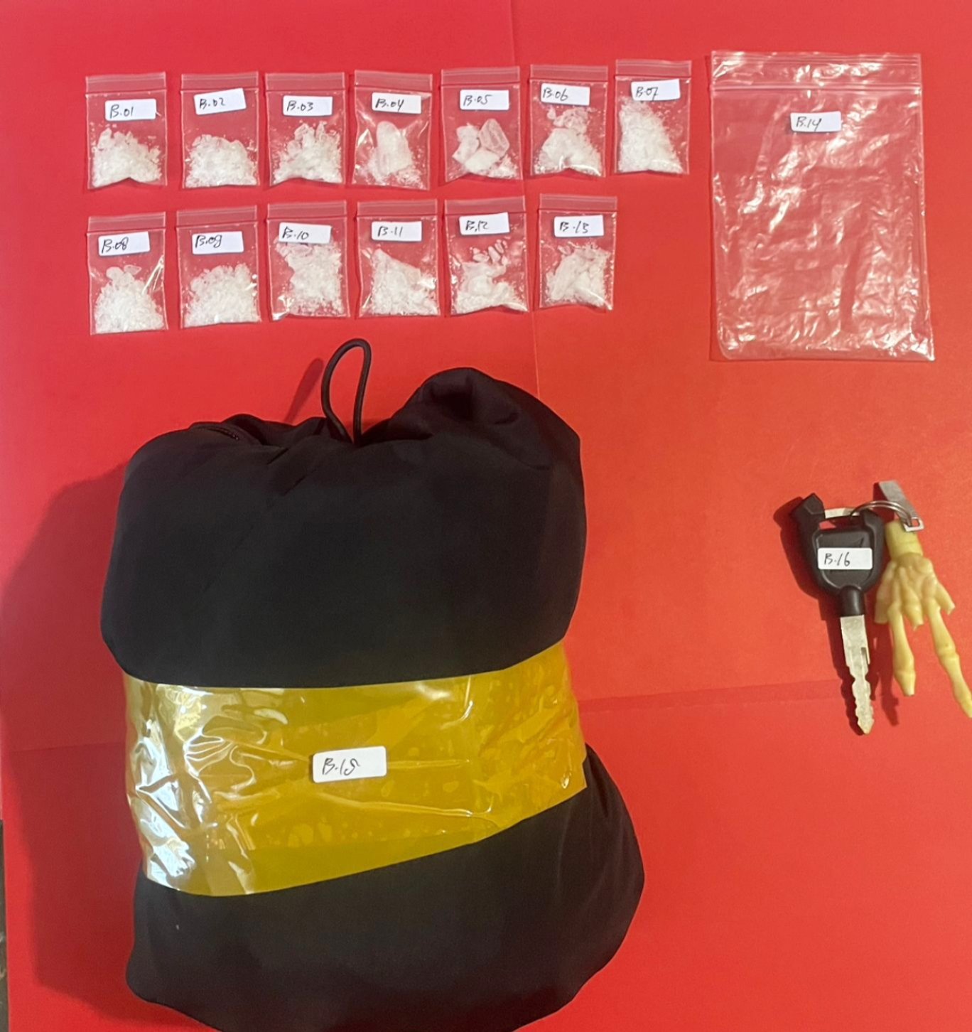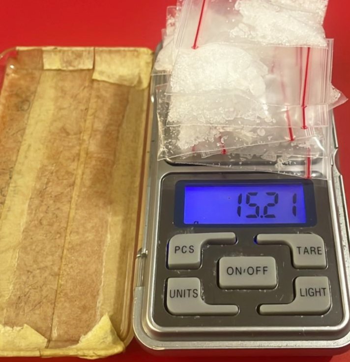 Sesampainya di sana, petugas melihat dua pria mencurigakan mengendarai sepeda motor Honda Sonic warna hitam tanpa plat nomor polisi. Saat dilakukan penggeledahan, petugas menemukan 13 bungkus plastik klip berisi kristal putih atau sabu yang disembunyikan di dalam jaket milik tersangka MF.
