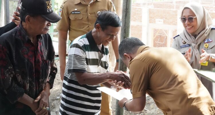 Walikota palu saat menyerahkan sertifikat kepada masyarakat korban bencana likuifaksi dari kelurahan